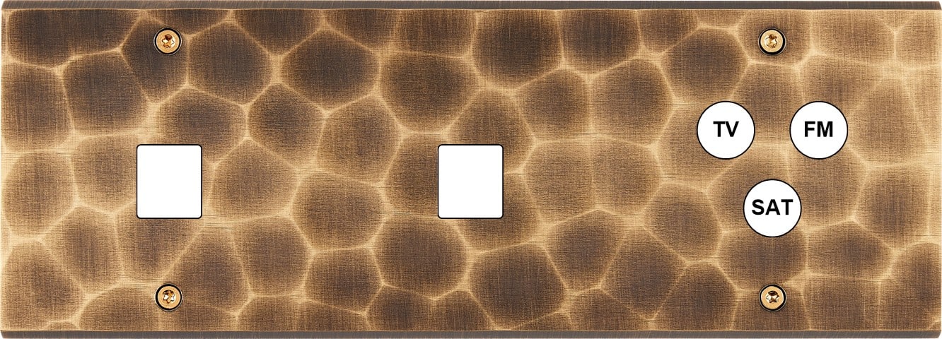 Façade Fascination en laiton massif finition Onde triple horizontale 1 média 1 média 1 TV-FM-SAT à vis. Dimensions : 222x80x5mm, deux chanfreins biseautés. Fabriqué en France, dans les ateliers de Steaven Richard.