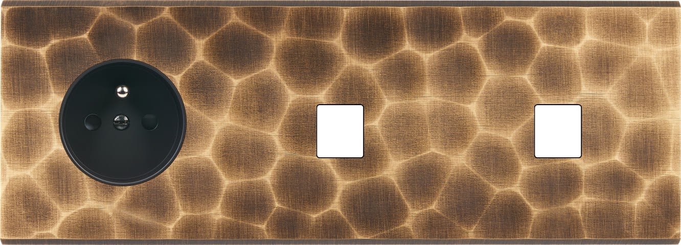 Façade Fascination en laiton massif finition Onde triple horizontale prise 2P+T 1 Media 1 Media . Dimensions : 222x80x5mm, deux chanfreins biseautés. Fabriqué en France, dans les ateliers de Steaven Richard.