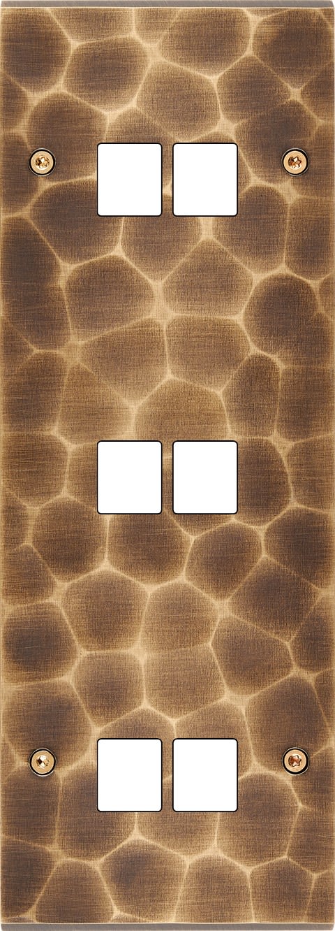 Laiton massif 5mm - Format triple verticale 80x222mm - 6 finitions disponibles et plus de 50 fonctions - Montage sur boîtiers standards profondeur 50mm - Façade à vis