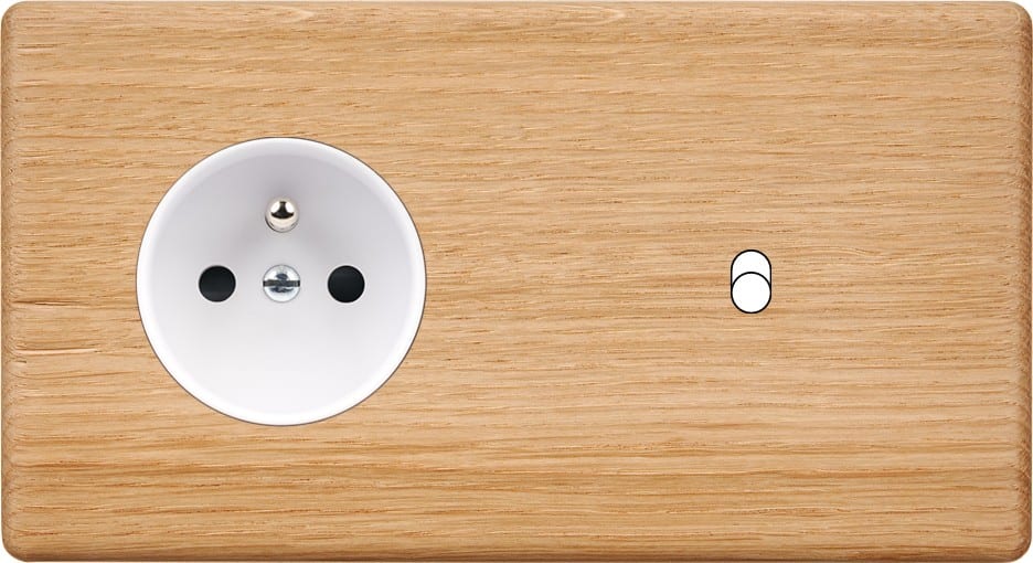 Façade Hitera Chêne Clair double horizontale 1 prise 2P T / 1 basculeur. En bois massif. Fabriqué en France.