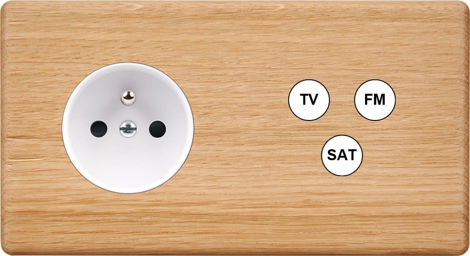 Façade Hitera Chêne Clair double horizontale 1 prise 2P T / TV-FM-SAT. En bois massif. Fabriqué en France.