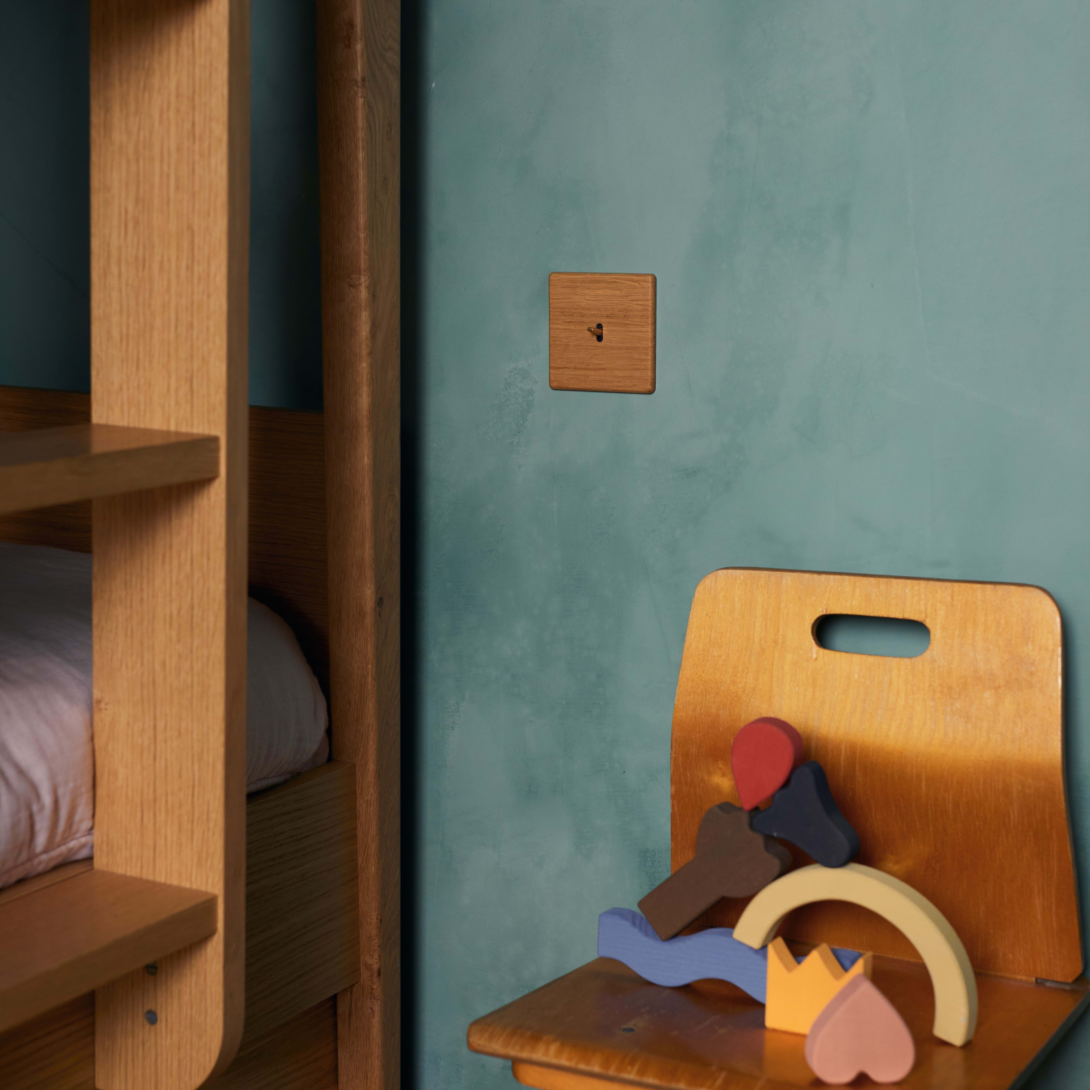 Façade d'interrupteur en chêne - 85x85mm - Epaisseur 6mm - Collection Hitera 6 finitions disponibles - Montage sur boîtiers d'encastrement standards - Compatible avec les mécanismes à connexion automatique MODELEC. Fabriqué en France