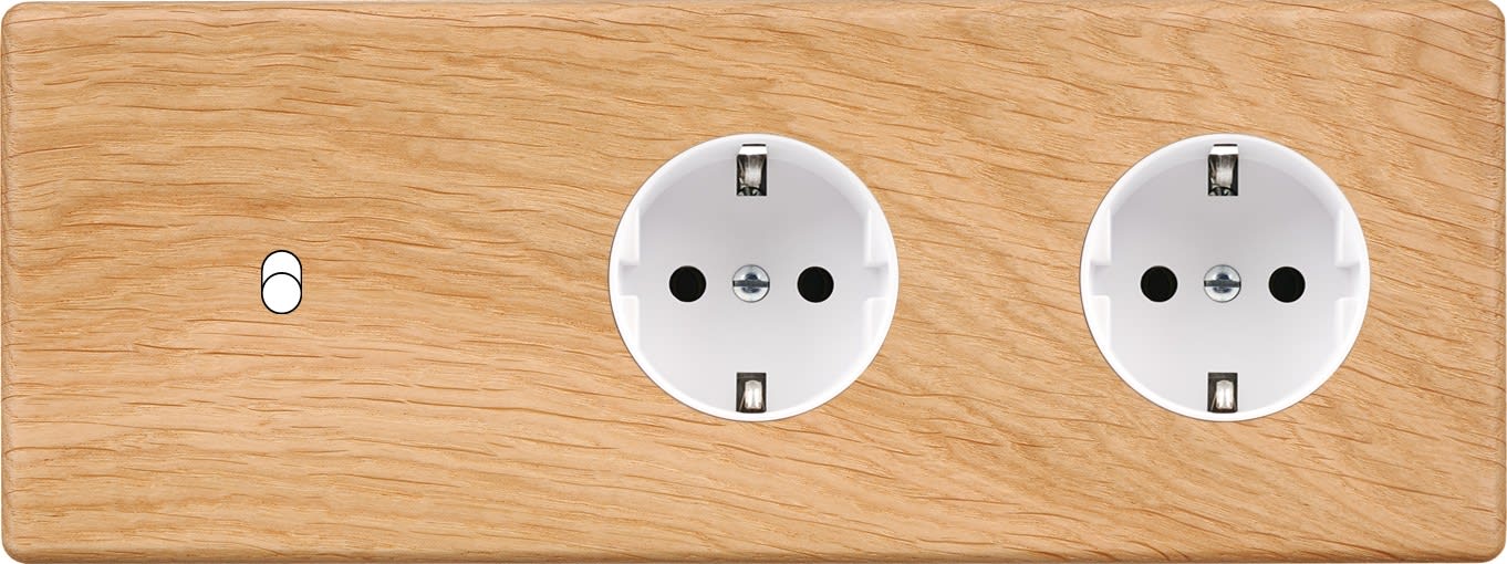 Façade Hitera chene clair triple horizontale 1 basculeur / 1 prise de courant Schuko / 1 prise de courant Schuko. En bois massif. Fabriqué en France.