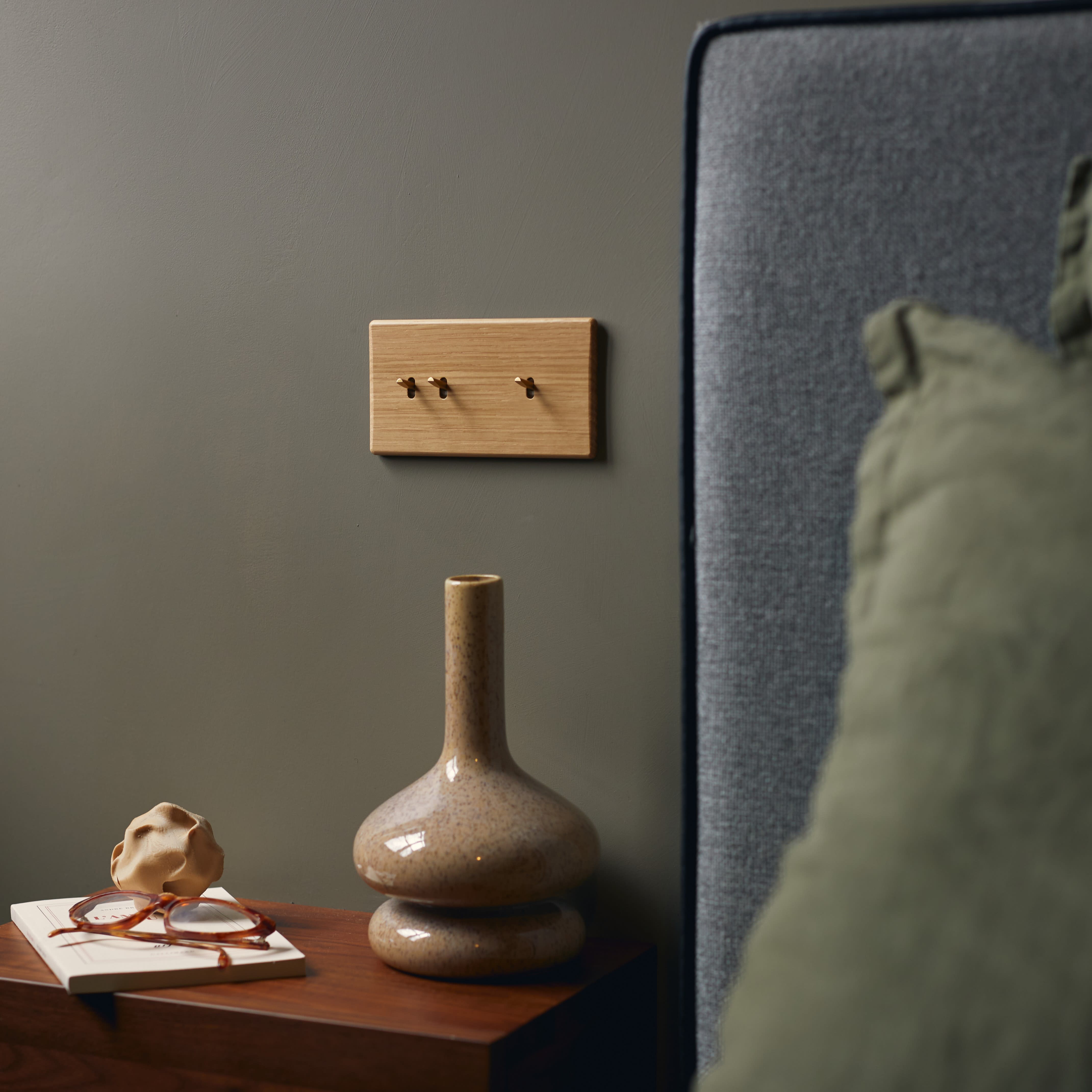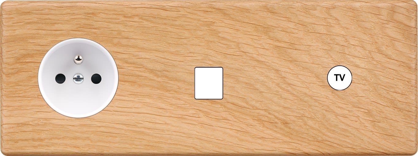 Façade Hitera Chêne Clair triple horizontale prise 2P T / 1 media / 1 prise TV. En bois massif. Fabriqué en France.