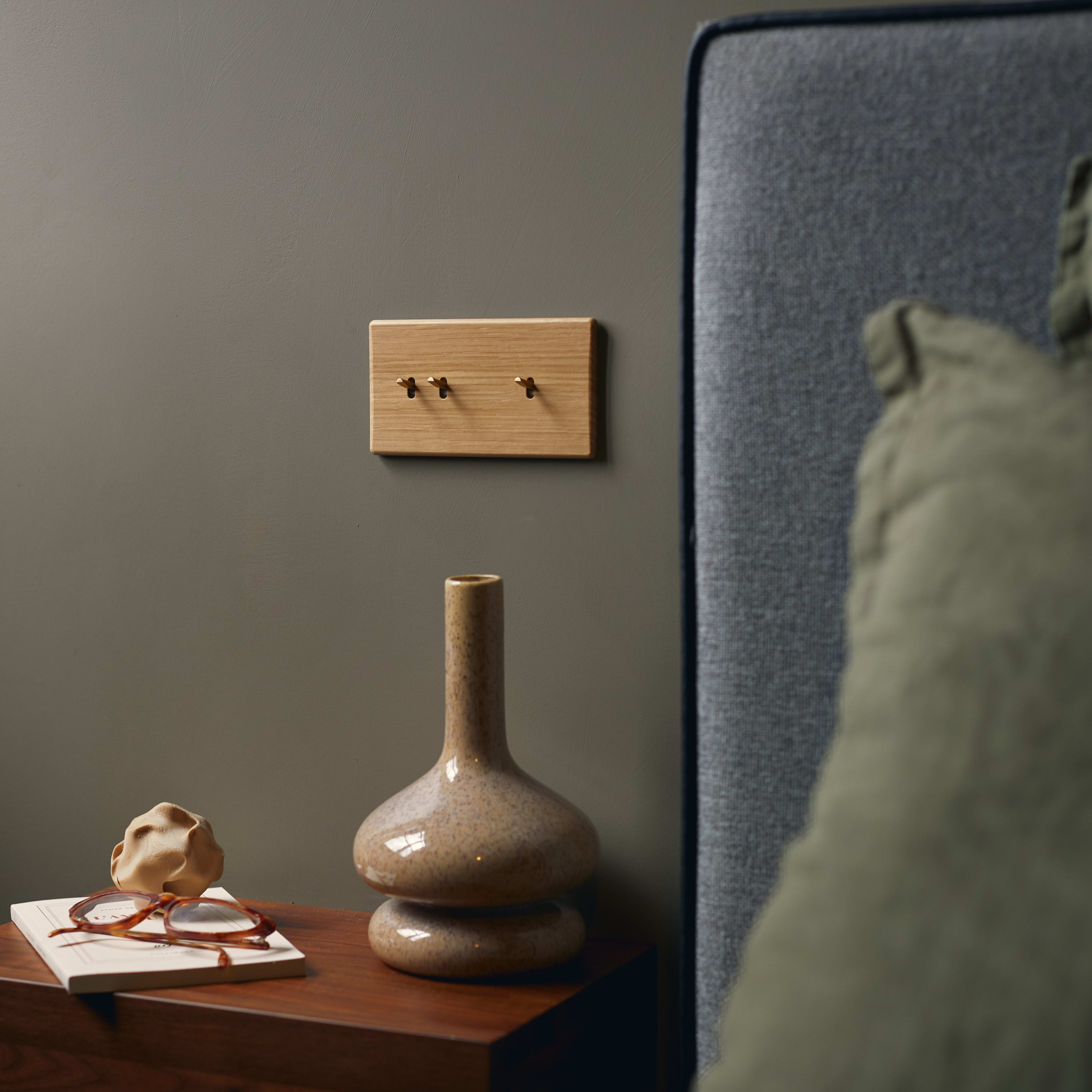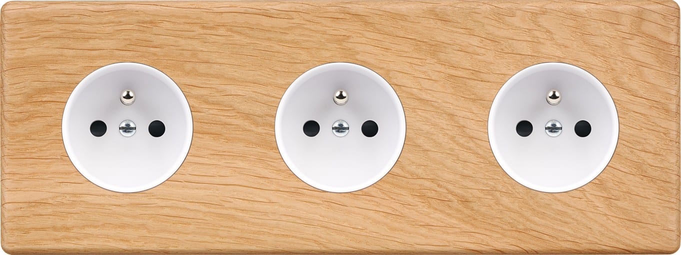 Façade Hitera Chêne Clair triple horizontale 1 prise 2P T / 1 prise 2P T / 1 prise 2P+T. En bois massif. Fabriqué en France.