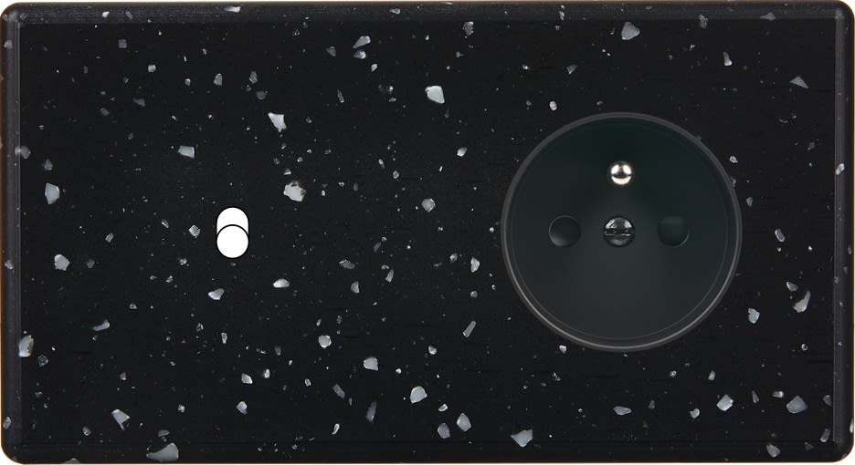 Façade Hitera Terrazzo Noir double horizontale 1 basculeur / 1 prise 2P+T. Fabriqué en France.