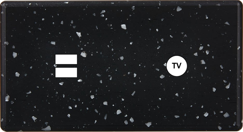 Façade Hitera Terrazzo Noir double horizontale ouverture pour chargeur double USB / 1 TV. Fabriqué en France.