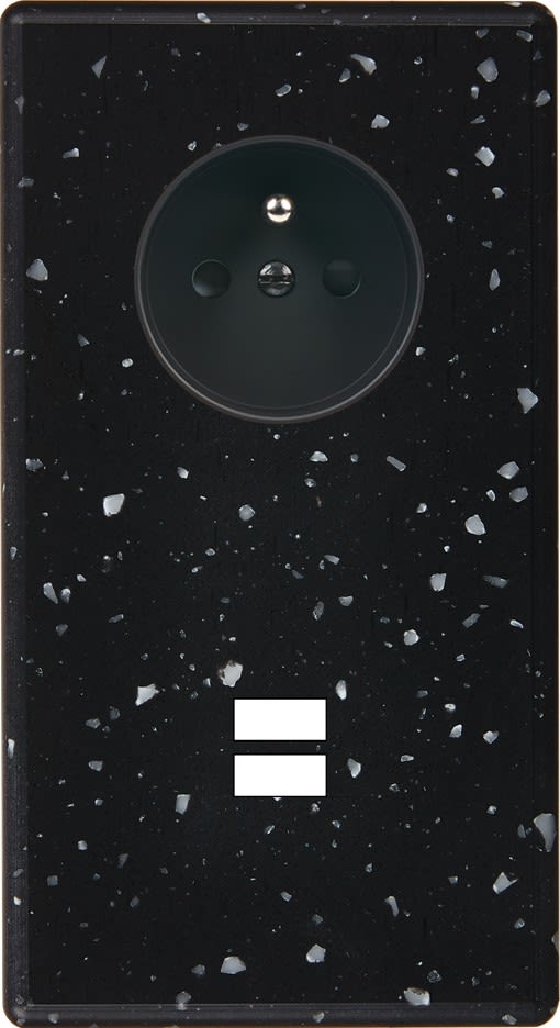 Façade Hitera Terrazzo Noir double verticale prise de courant 2P T / ouverture pour chargeur double USB. Fabriqué en France.