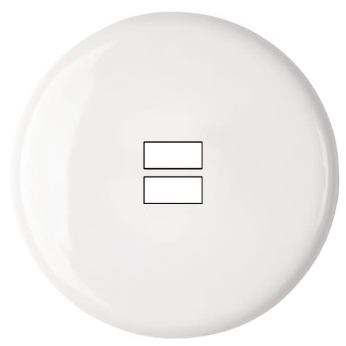 Façade Iris by MODELEC en porcelaine blanche simple poste chargeur double usb. Dimensions de la façade : diamètre 84mm +/-1mm, profondeur 7,5mm. Se monte sur un boitier d'encastrement standard Ø67-68 mm de profondeur 50 mm.