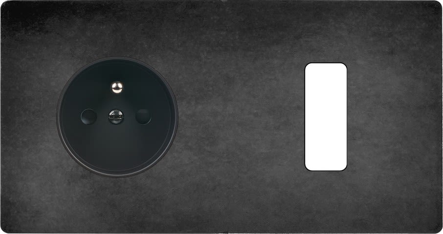 Façade "M" Acier Verni double horizontale, 1 prise de courant 2P+T /1 bouton. Façade magnétique. Fabriquée en France.