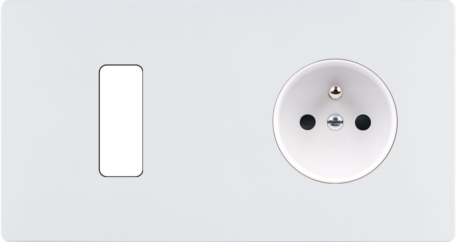 MODELEC - Façade "M" Blanc Mat Double Horizontale 1 Bouton 1 Prise magnétique - 261521M