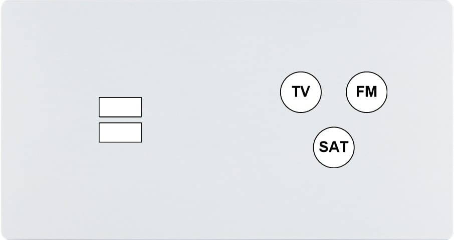 MODELEC - Façade "M" Blanc Mat Double Horizontale 1 Chargeur USB 1 Tv-Fm-Sat magnétique - 258521M