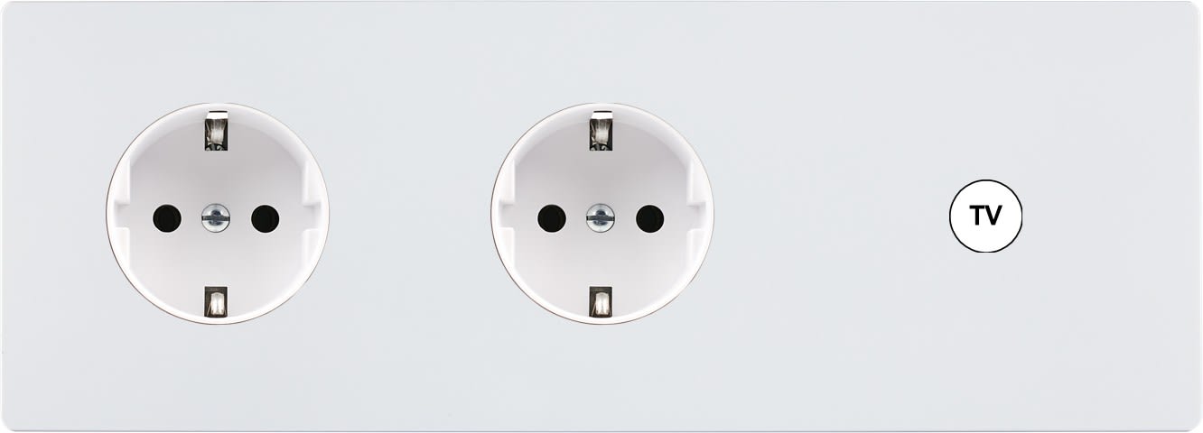 MODELEC - Façade "M" Blanc Mat Tri Horiz 1 Prise Schuko 1 Prise Schuko 1 Prise Tv magnétiq - 329521M-K