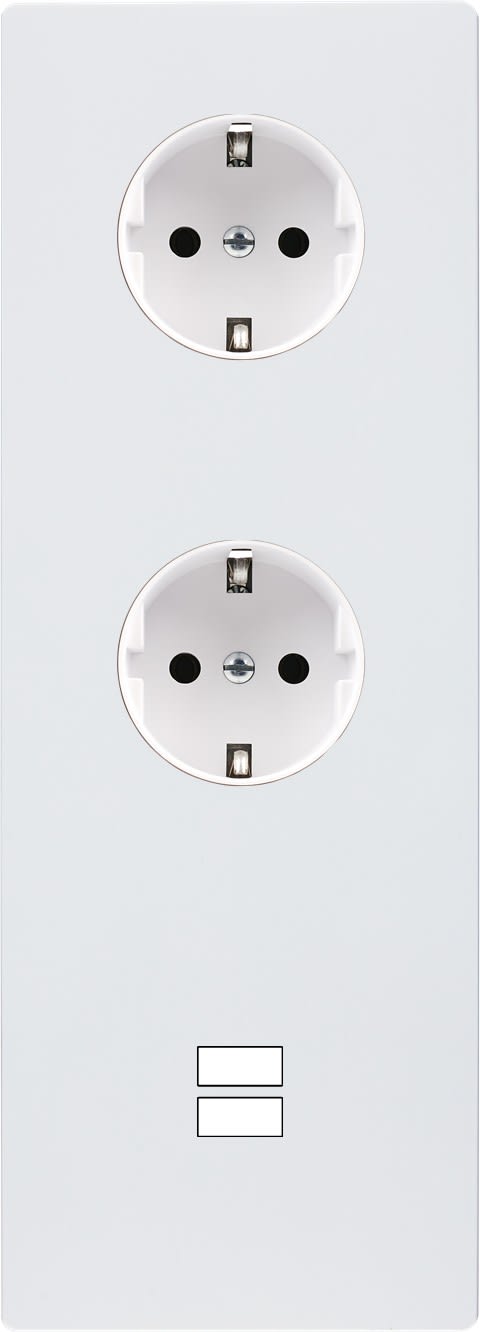 Façade "M" en aluminium finition Blanc Mat triple verticale, 1 prise schuko / 1 prise schuko / 1 chargeur USB. Façade magnétique. Fabriquée en France