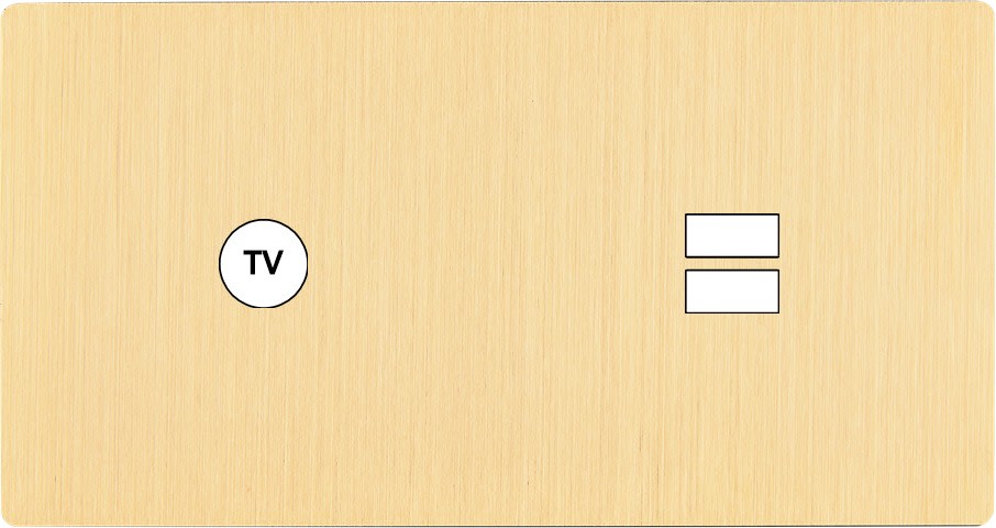 Façade "M" en laiton brossé double horizontale, 1 prise TV / 1 chargeur USB. Façade magnétique. Fabriquée en France.