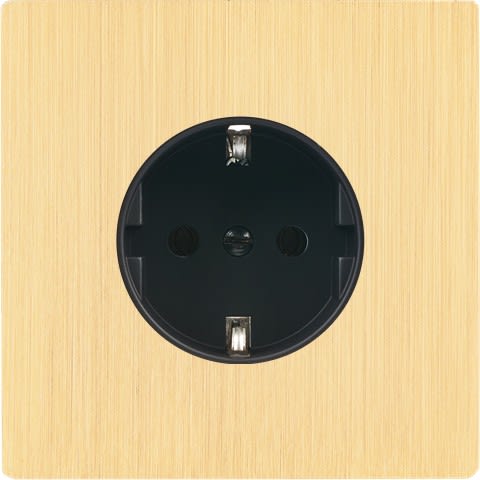 Façade "M" en laiton brossé simple, 1 prise schuko. Façade magnétique. Fabriquée en France.