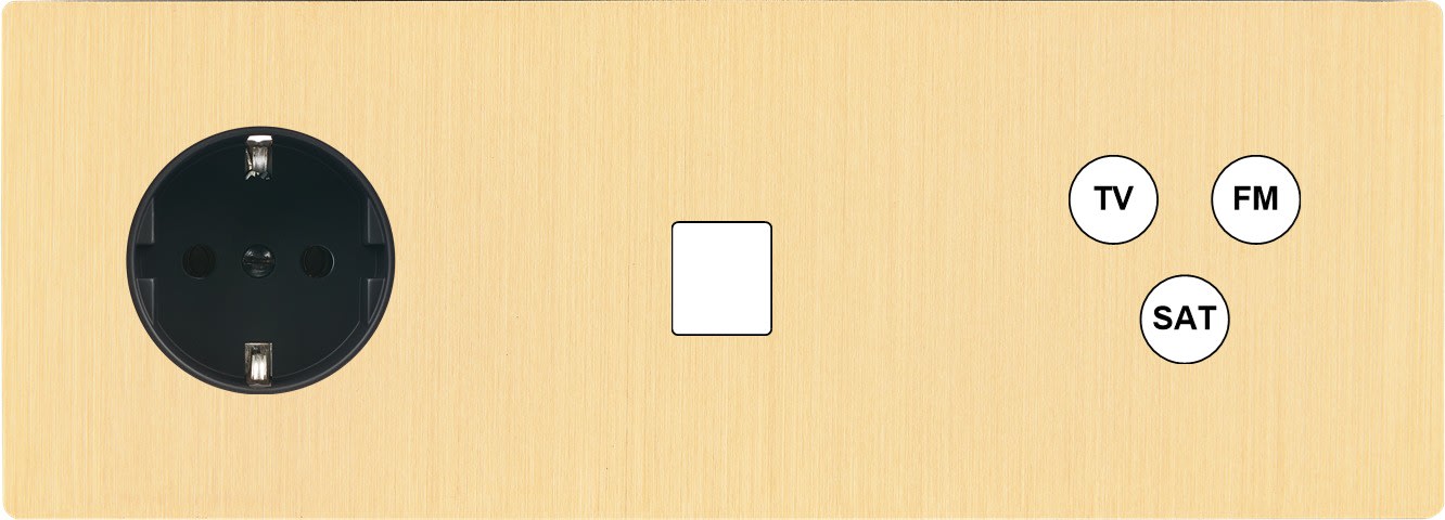 MODELEC - Façade "M" Laiton Brosse Tripl Horiz 1 Prise Schuko 1 Media 1 Tv-Fm-Sat magnétiq - 324512M-K