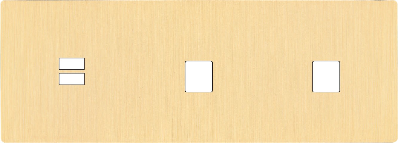 Façade "M" en laiton brossé triple horizontale, 1 chargeur USB 1 media / 1 media. Façade magnétique. Fabriquée en France.