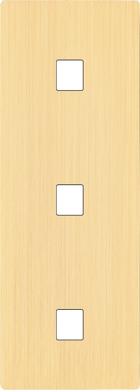 Façade "M" en laiton brossé triple verticale, 1 media / 1 media / 1 media. Façade magnétique. Fabriquée en France.