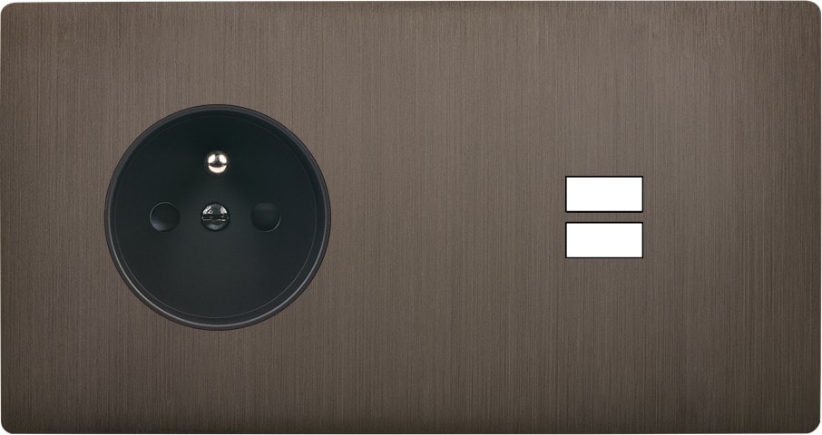 MODELEC - Façade "M" Laiton Canon De Fusil Dbl Horizontale 1 Prise 1 Chargeur USB magnétiq - 259514M