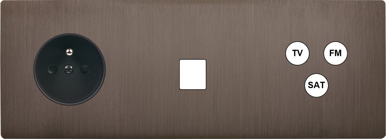 MODELEC - Façade "M" Laiton Canon Fusil Triple Horizontale R1 1 Media 1 Tv-Fm-Sat magnétiq - 324514M