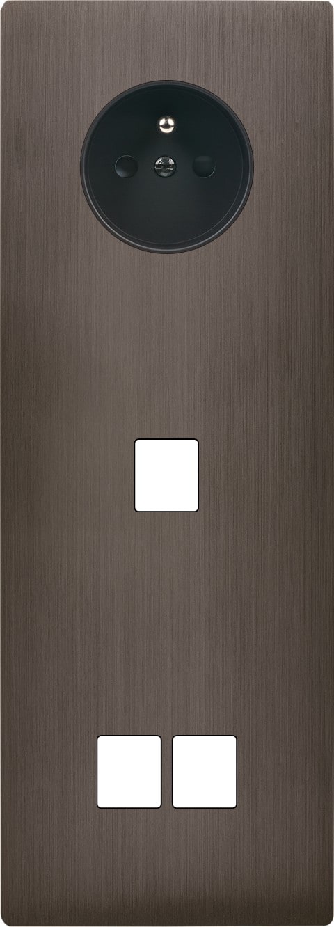 Façade "M" en laiton massif finition Canon de Fusil Triple verticale, 1 prise 2P+T / 1 Media / 2 Media. Façade magnétique. Fabriquée en France.