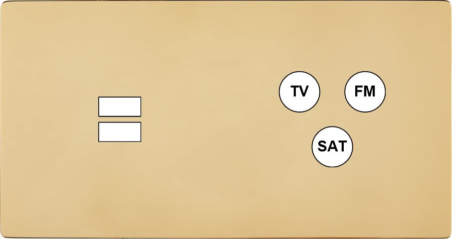 Façade "M" Laiton Miroir double horizontale, 1 chargeur USB / 1 tv-fm-sat. Façade magnétique. Fabriquée en France. Sur cette finition, le laiton n'est pas verni, pour qu'il se patine avec le temps.