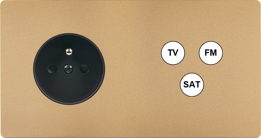 MODELEC - Façade "M" Laiton Sable Double Horizontale 1 Prise 1 Tv-Fm-Sat magnétique - 265532M