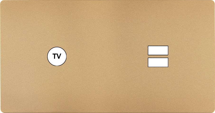 Façade "M" en Laiton Sablé double horizontale, 1 prise TV / 1 chargeur USB. Façade magnétique. Fabriquée en France.