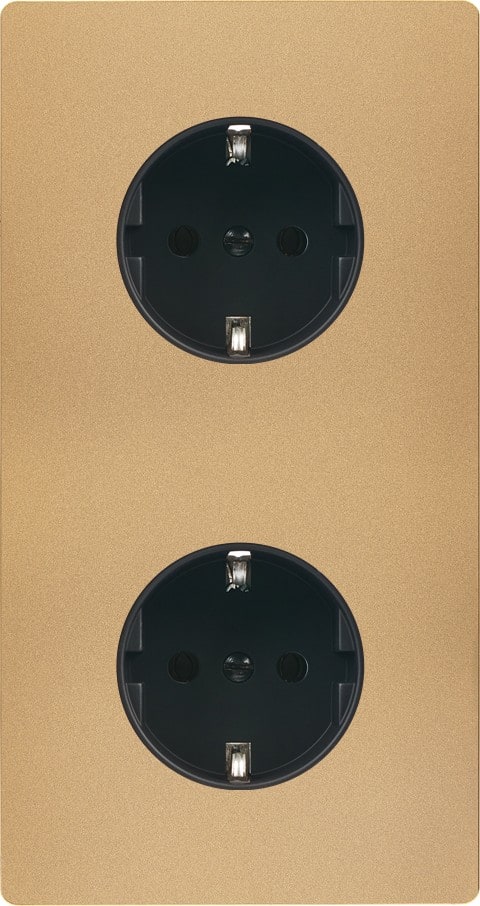 MODELEC - Façade "M" Laiton Sable Double Verticale 1 Prise Schuko 1 Prise Schuko magnétiq - 280532M-K