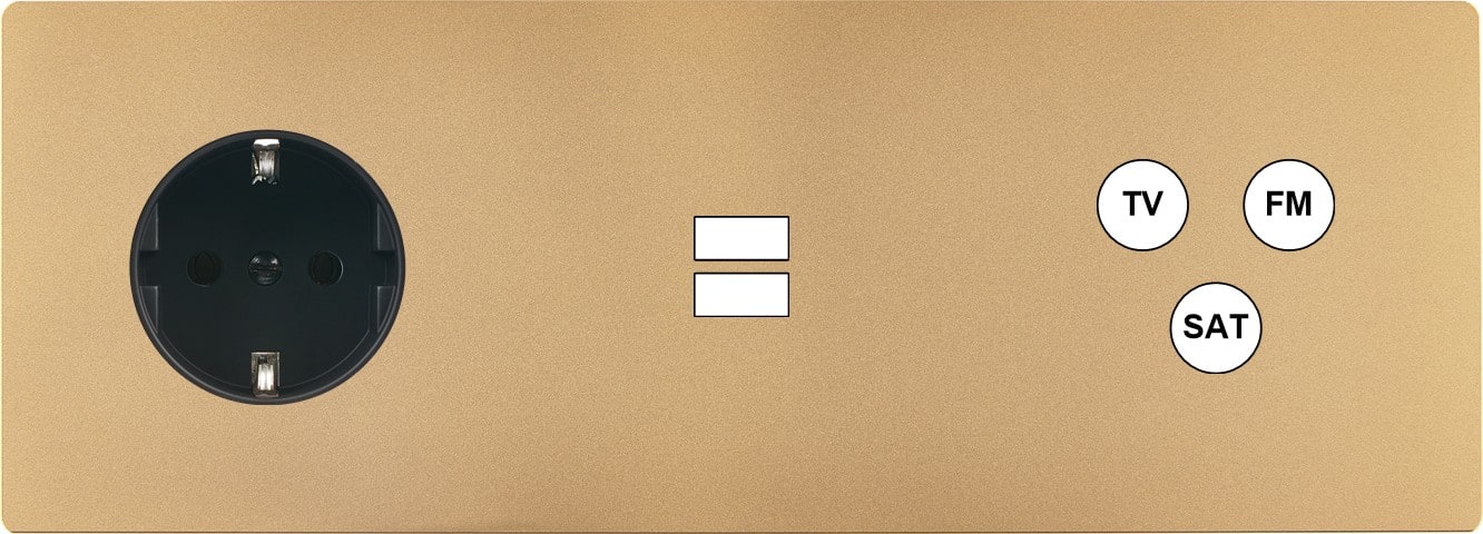 MODELEC - Façade "M" Laiton Sable Tripl Horiz 1 Schuko 1 Chargeur USB 1 Tv-Fm-Sat magnétiq - 333532M-K