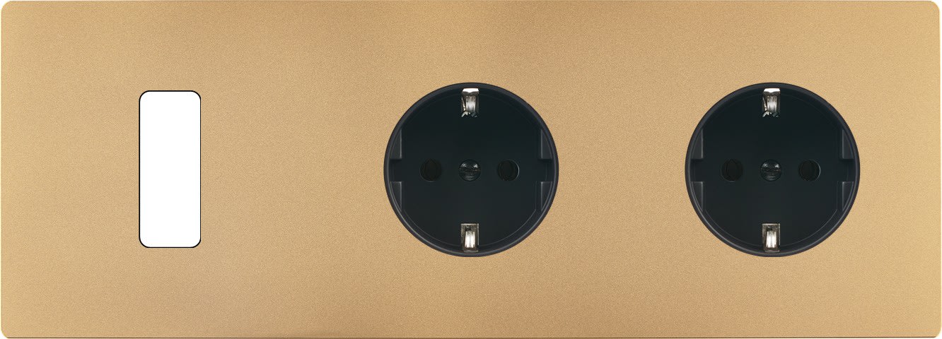 MODELEC - Façade "M" Laiton Sable Triple Horizontale 1 Bouton 2 Prises Schuko magnétique - 311532M-K