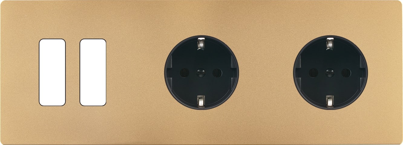 MODELEC - Façade "M" Laiton Sable Triple Horizontale 2 Boutons 2 Prises Schuko magnétique - 312532M-K