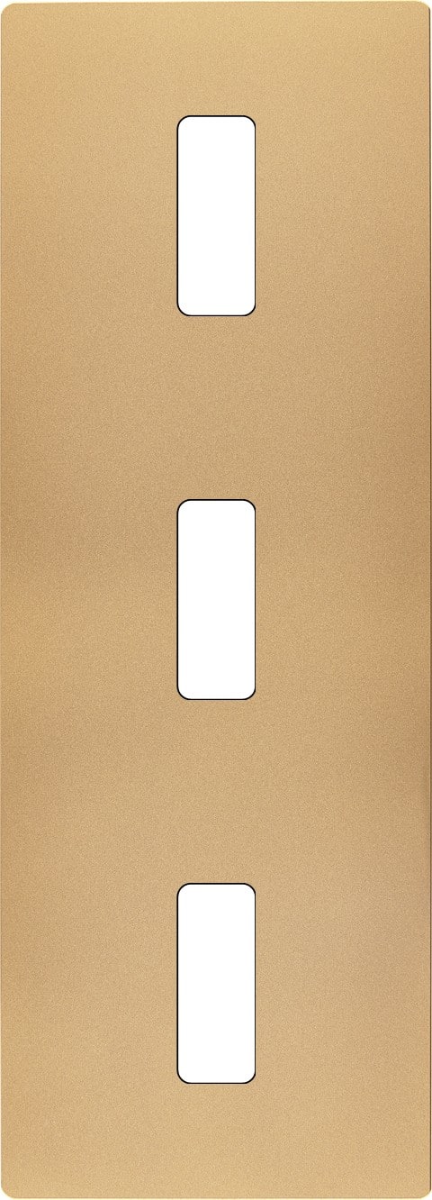 Façade "M" en Laiton Sablé triple verticale, 1 bouton / 1 bouton / 1 bouton. Façade magnétique. Fabriquée en France.