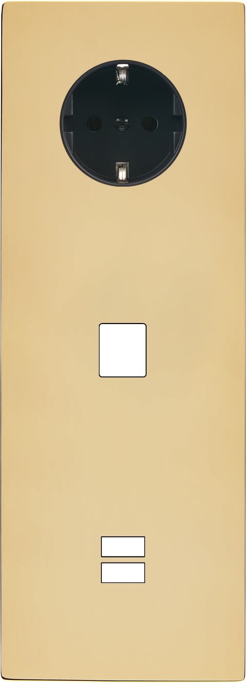 Façade "M" Laiton Verni triple verticale, 1 prise schuko / 1 Media / 1 chargeur USB. Façade magnétique. Fabriquée en France.