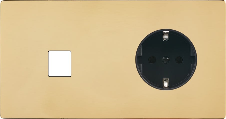 Façade "M" Laiton Verni double horizontale, 1 Media / 1 prise schuko. Façade magnétique. Fabriquée en France.