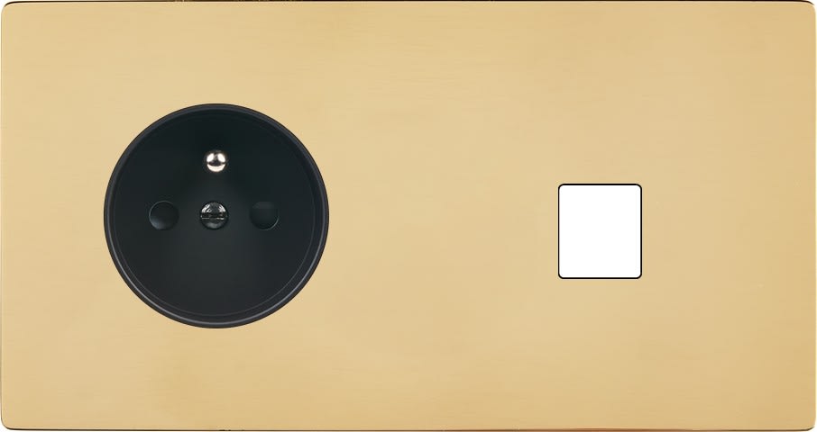 Façade "M" Laiton Verni double horizontale, 1 prise de courant 2P+T / 1 media. Façade magnétique. Fabriquée en France.