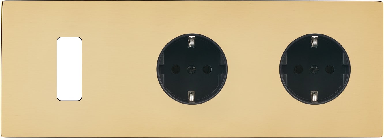 MODELEC - Façade "M" Laiton Verni Triple Horizontale 1 Bouton 2 Prises Schuko magnétique - 311542M-K