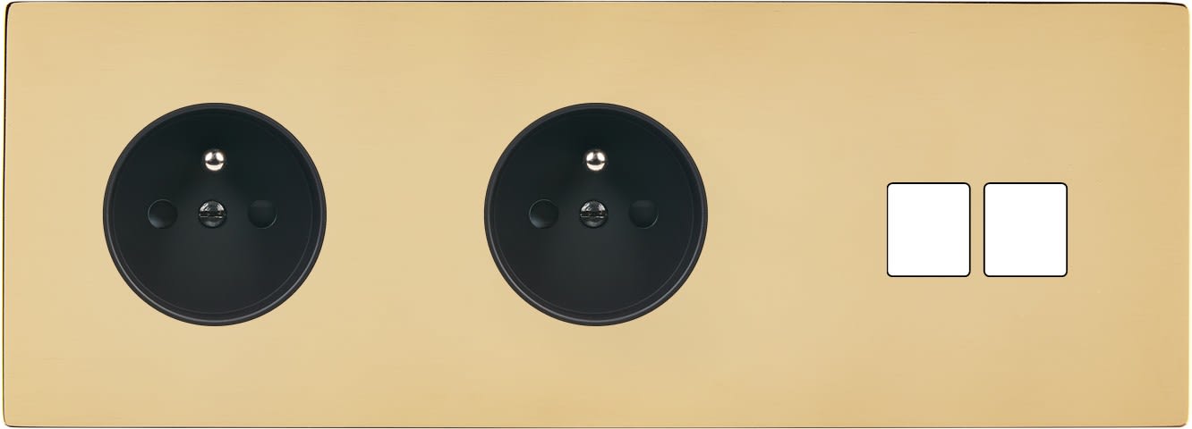 MODELEC - Façade "M" Laiton Verni Triple Horizontale 1 Prise 1 Prise 2 Media magnétique - 314542M