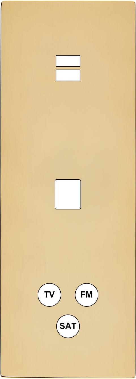 Façade "M" Laiton Verni triple verticale, 1 chargeur USB 1 media 1 tv-fm-sat. Façade magnétique. Fabriquée en France.