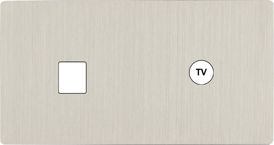 Façade "M" en laiton massif finition Nickel Brossé, double horizontale, 1 Media / 1 prise tv. Façade magnétique. Fabriquée en France.