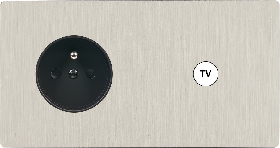 MODELEC - Façade "M" Nickel Brosse Double Horizontale 1 Prise 1 Prise Tv magnétique - 279511M
