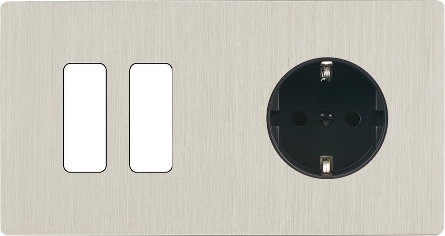 MODELEC - Façade "M" Nickel Brosse Double Horizontale 2 Boutons 1 Prise Schuko magnétique - 262511M-K