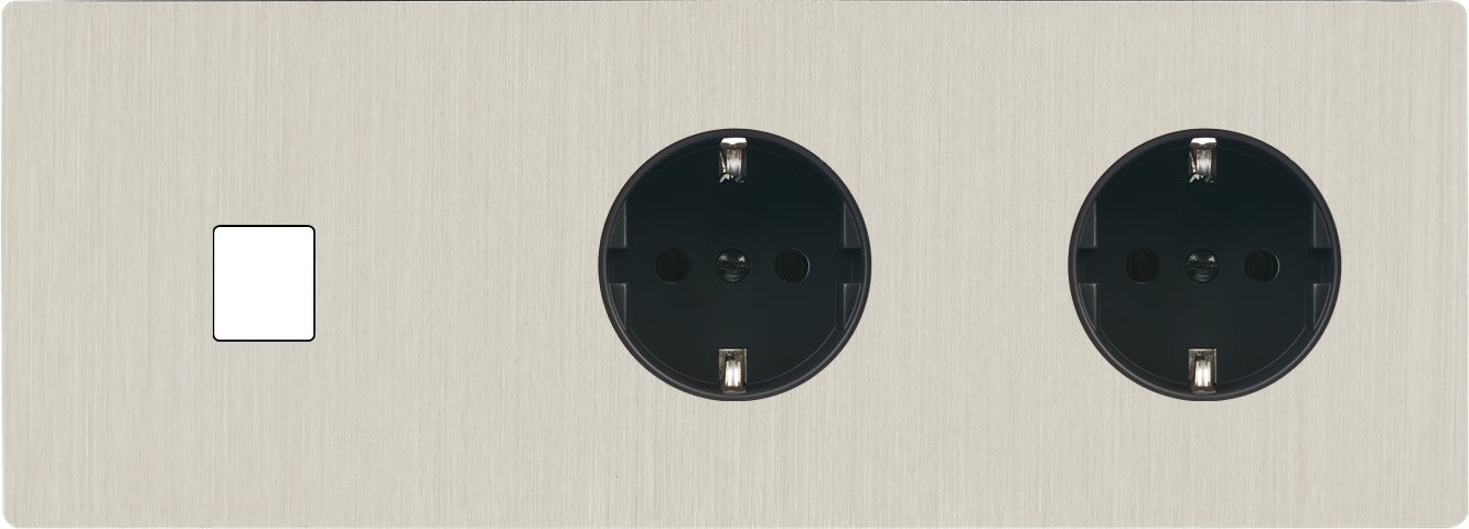 MODELEC - Façade "M" Nickel Brosse Triple Horizontale 1 Media 2 Prises Schuko magnétique - 301511M-K