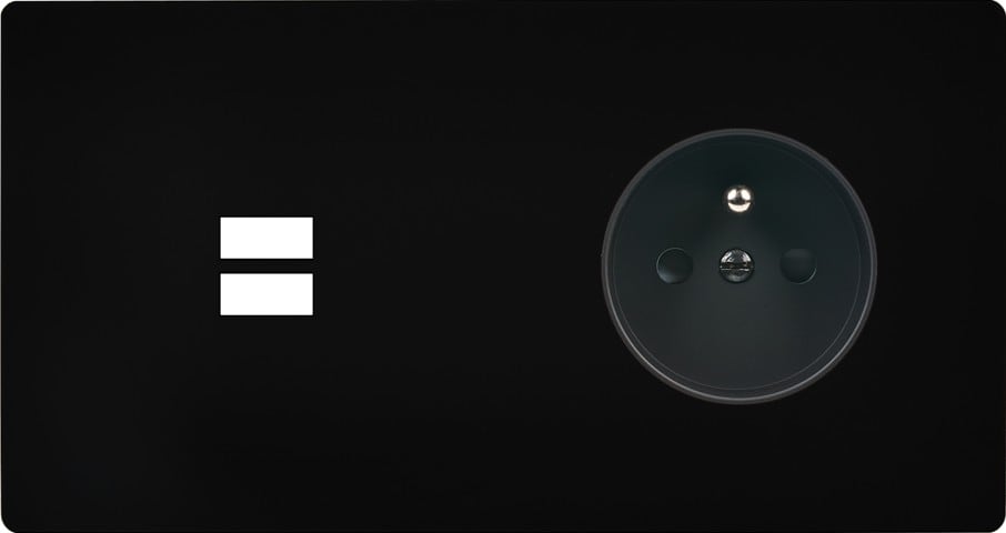 MODELEC - Façade "M" Noir Mat Double Horizontale 1 Chargeur USB magnétique - 295522M