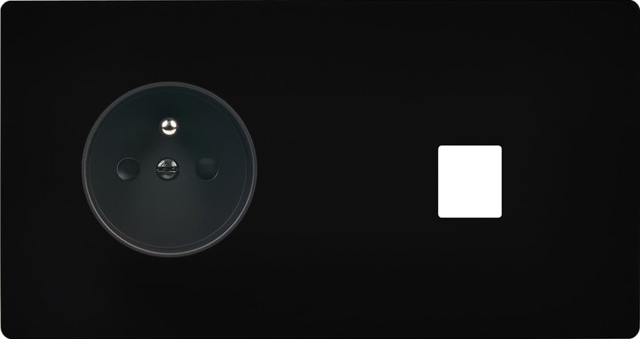 MODELEC - Façade "M" Noir Mat Double Horizontale 1 Prise 1 Media magnétique - 263522M