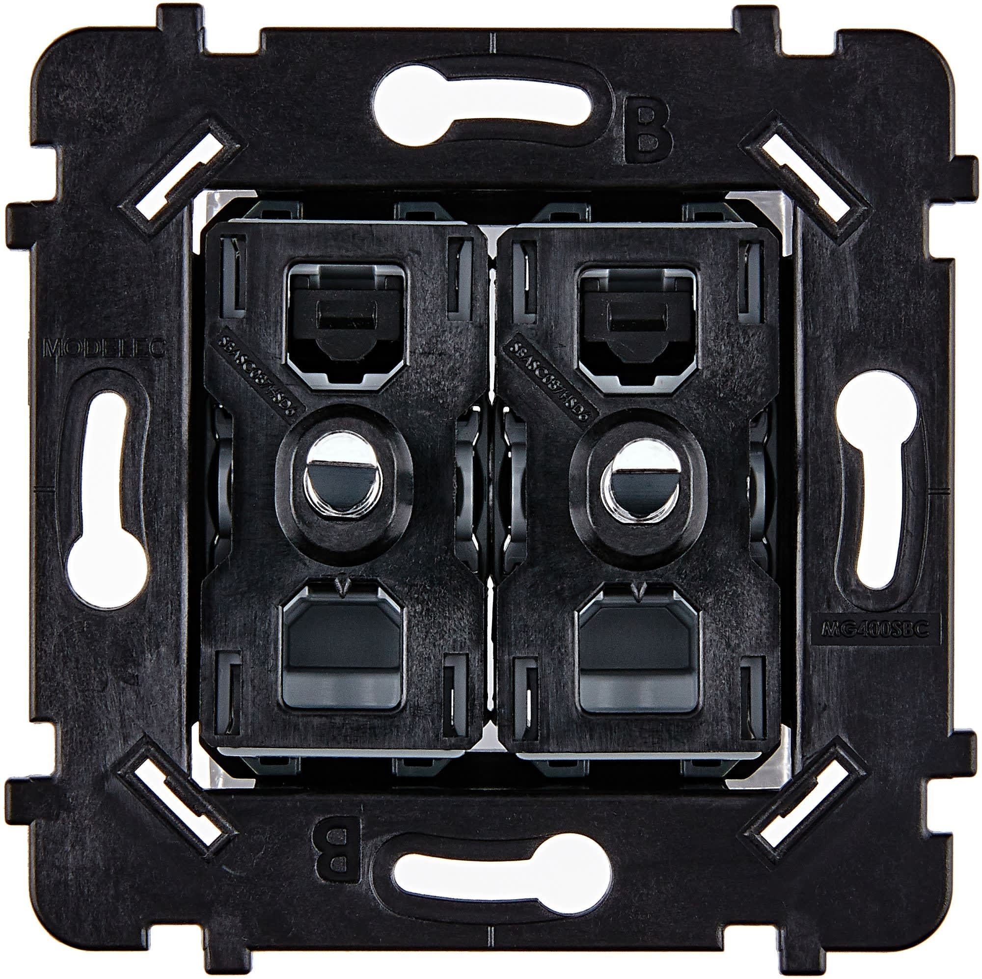 Mécanismes standards pour interrupteurs MODELEC:- Compatibles avec toutes nos collections - Mécanismes silencieux- Installation facile et rapide grâce à la connexion automatique- Conformes à la norme d’installation sans raccordement à la terre (sauf prise 2P+T)- Fonctions disponibles: DUO (va et vient ou poussoir), volets roulants (va-et-vient ou poussoir), prises (2P+T, Schuko, HDMI, TV, USB, RJ45, etc.), obturateurs, détecteurs de présence, interrupteur à carte, sortie de câble, etc.