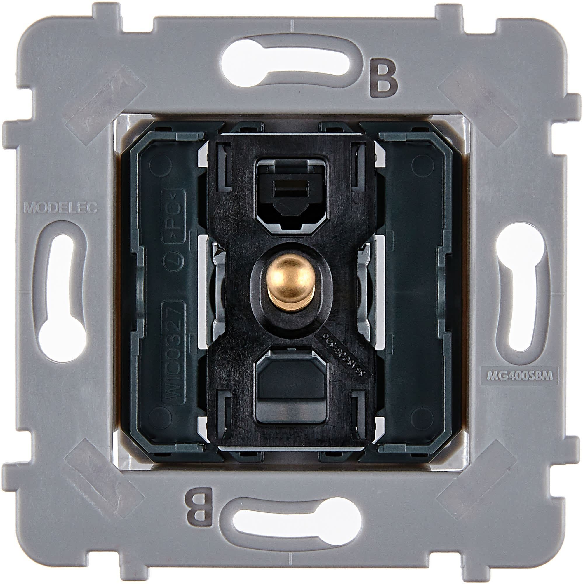 Mécanismes standards pour interrupteurs MODELEC:- Compatibles avec toutes nos collections - Mécanismes silencieux- Installation facile et rapide grâce à la connexion automatique- Conformes à la norme d’installation sans raccordement à la terre (sauf prise 2P+T)- Fonctions disponibles: DUO (va et vient ou poussoir), volets roulants (va-et-vient ou poussoir), prises (2P+T, Schuko, HDMI, TV, USB, RJ45, etc.), obturateurs, détecteurs de présence, interrupteur à carte, sortie de câble, etc.