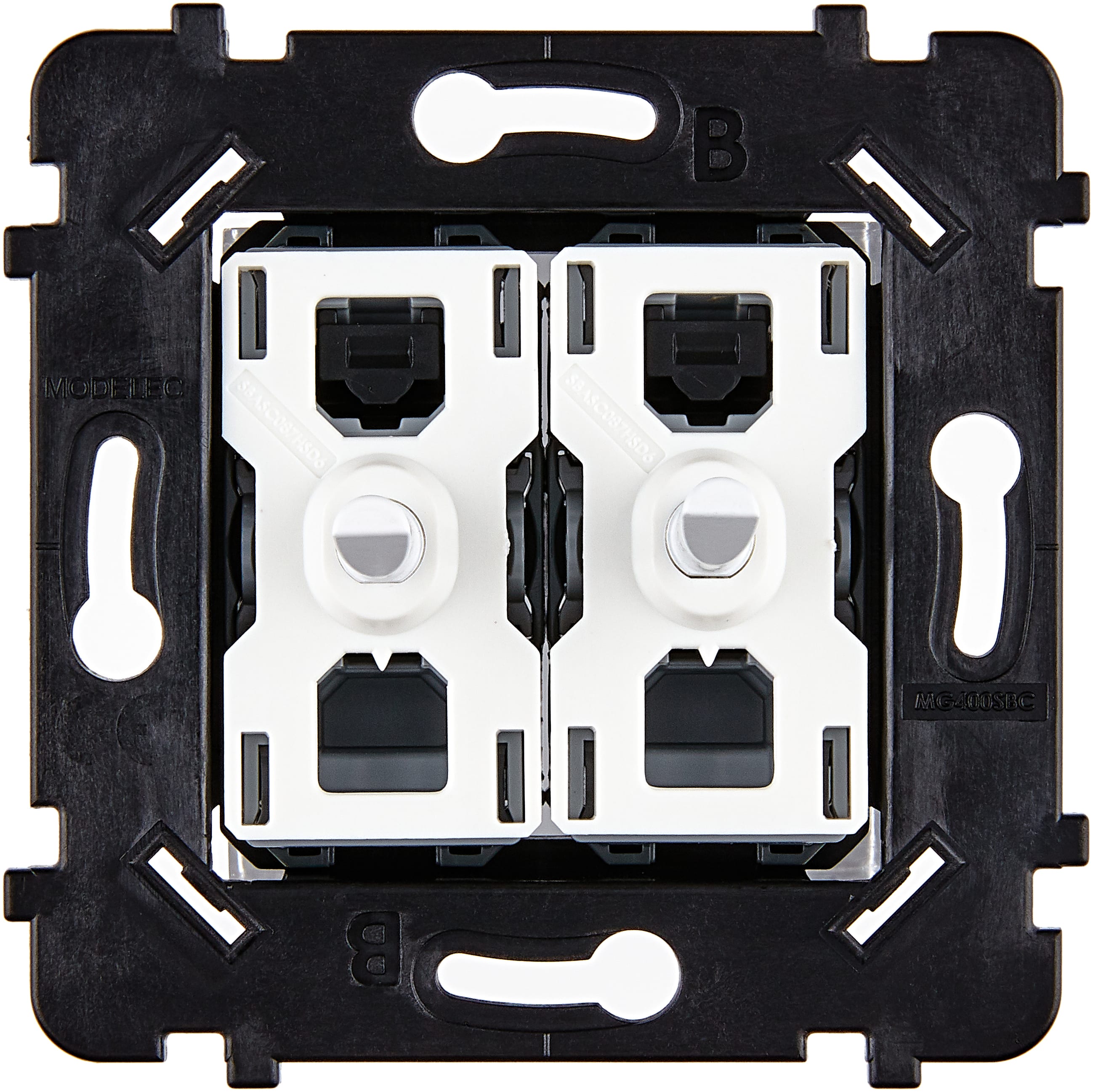 Mécanismes standards pour interrupteurs MODELEC:- Compatibles avec toutes nos collections - Mécanismes silencieux- Installation facile et rapide grâce à la connexion automatique- Conformes à la norme d’installation sans raccordement à la terre (sauf prise 2P+T)- Fonctions disponibles: DUO (va et vient ou poussoir), volets roulants (va-et-vient ou poussoir), prises (2P+T, Schuko, HDMI, TV, USB, RJ45, etc.), obturateurs, détecteurs de présence, interrupteur à carte, sortie de câble, etc.