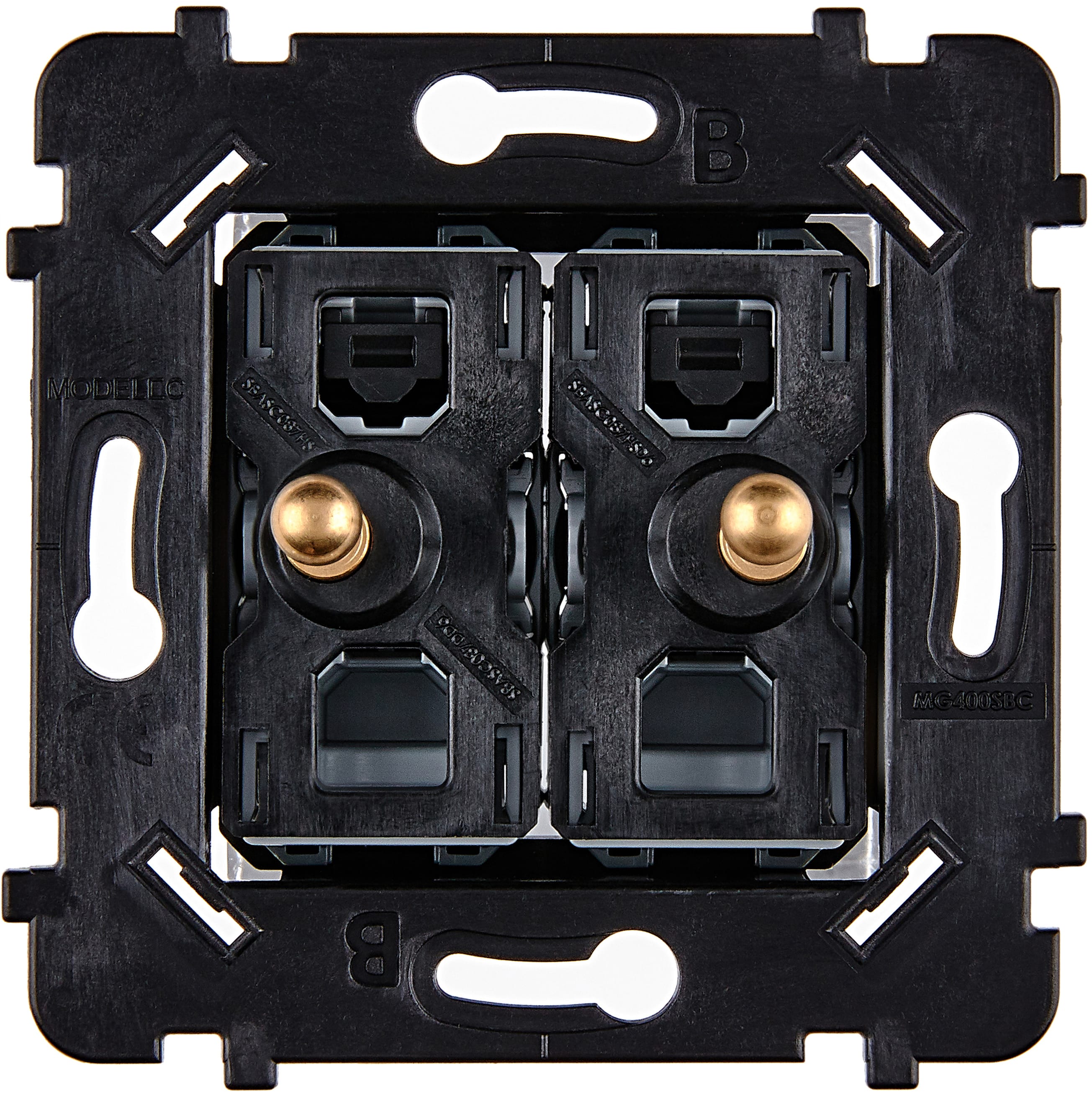 Mécanismes standards pour interrupteurs MODELEC:- Compatibles avec toutes nos collections - Mécanismes silencieux- Installation facile et rapide grâce à la connexion automatique- Conformes à la norme d’installation sans raccordement à la terre (sauf prise 2P+T)- Fonctions disponibles: DUO (va et vient ou poussoir), volets roulants (va-et-vient ou poussoir), prises (2P+T, Schuko, HDMI, TV, USB, RJ45, etc.), obturateurs, détecteurs de présence, interrupteur à carte, sortie de câble, etc.